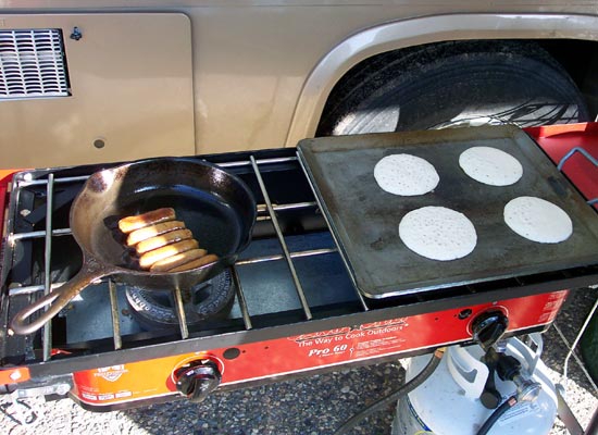 Norm cooked a pancake breakfast for all comers.
