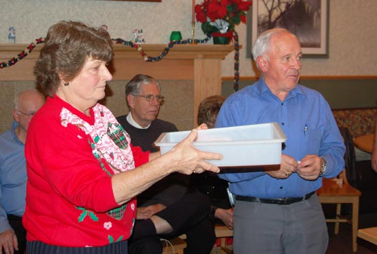 Maxine and Gary conducted a raffle for the table decorations