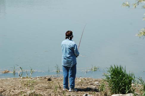 Betty let Bruce set up the motorhome while she rushed down to the river to start fishing.