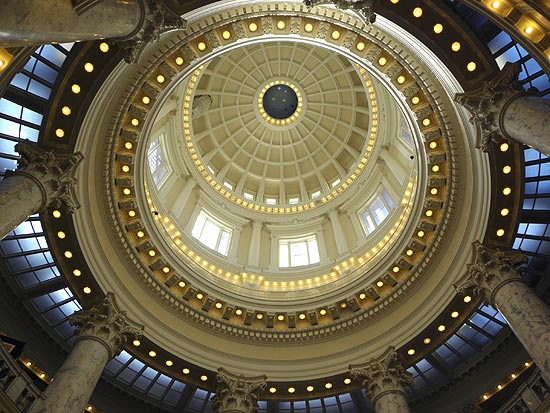This is the Idaho State Capitol building, housing the Idaho Legislature. The main building was completed by 1913. It is the only state capitol to be heated by a geothermal well.