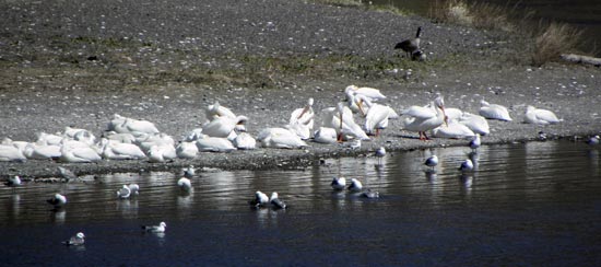 Many pelicans and other birds could be seen on this island in the Snake River.
