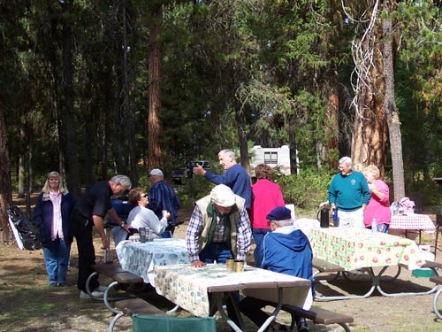 Jan and Roberta came up with a unique and very successful idea to cook individually prepared omlettes for everyone all at one time. They boiled them! Now who would ever think of that? But it worked and everyone was happy with the result.
