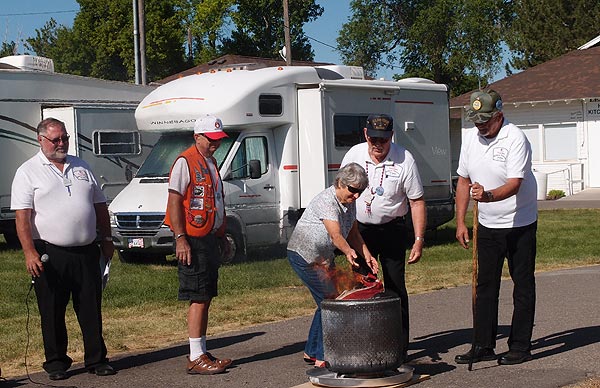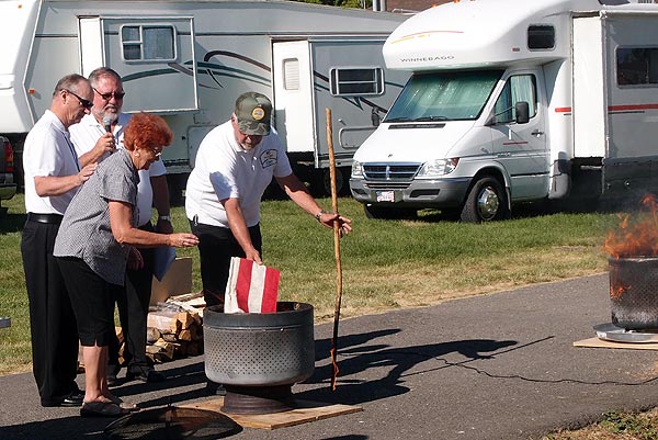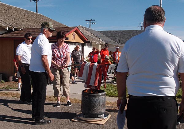 The veterans held a flag retirement ceremony. Some Time-to-Travel members participated by burning a retired flag in memory of their loved one.
