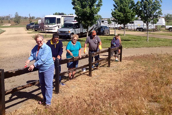 One day we helped the park staff by painting a weathered fence surrounding the yurt parking area.