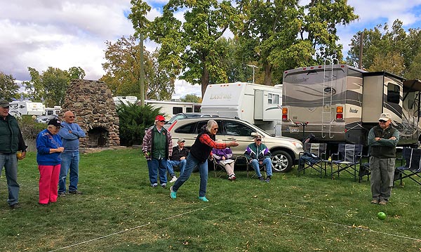 George brought his bocce ball game which many of us enjoyed. Nice form Judy! The next morning George helped everyone cook their "biscuits on a stick".