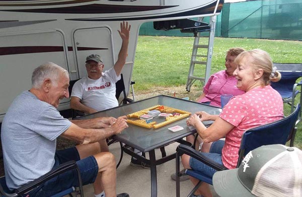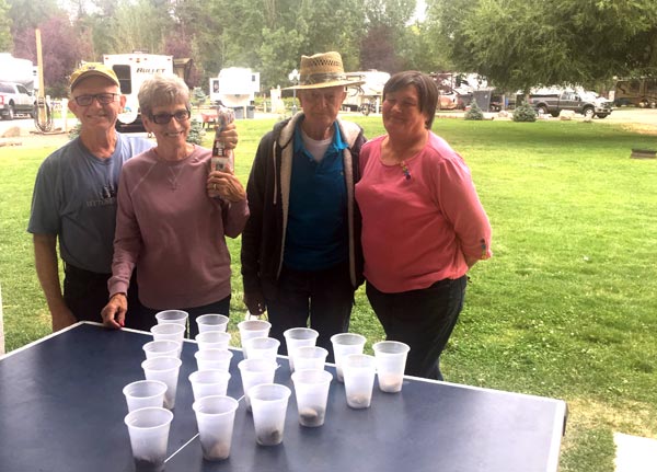 Of course we played games. These are the winners of the ping-pong toss game. We had full use of the pavilion at the RV park.