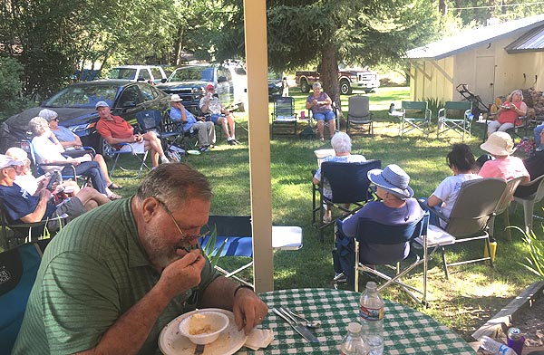 On Wednesday we had a picnic at Robertson's cabin that featured a dutch oven cooked dinner. Most of the photos below show us eating. That is not all we did. But it is the best time to get everyone together for a picture.